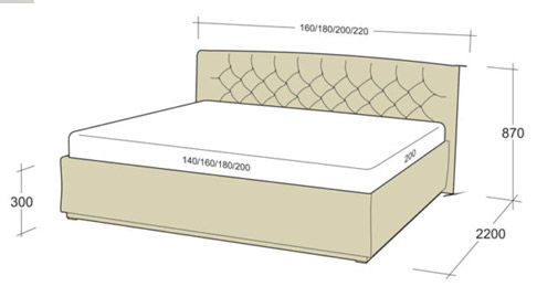 - двуспальная кровать имеет ширину не менее 160 см, популярный вариант – 180 см, но