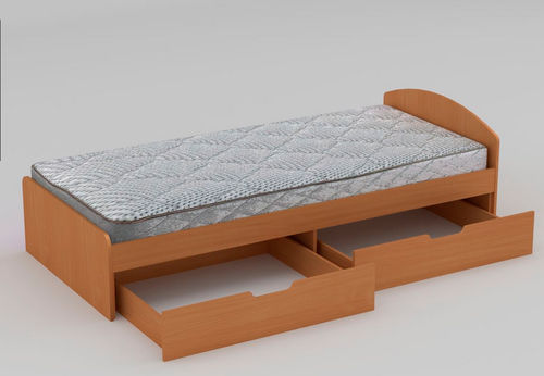 Кровать изготовлен из качественных плит ЛДСП, покрыт защитной пленкой ПВХ.