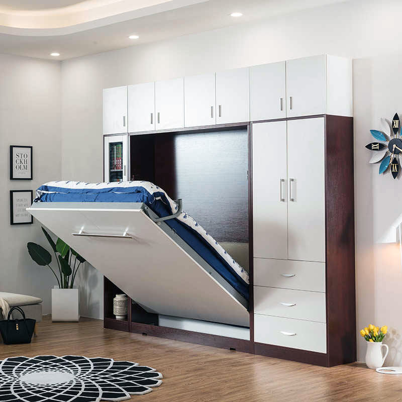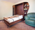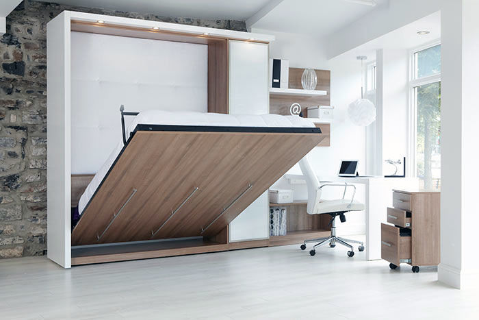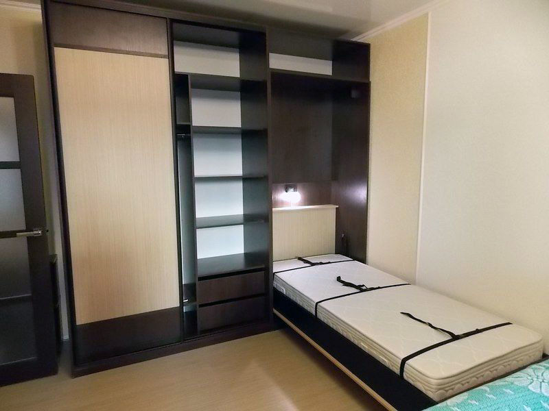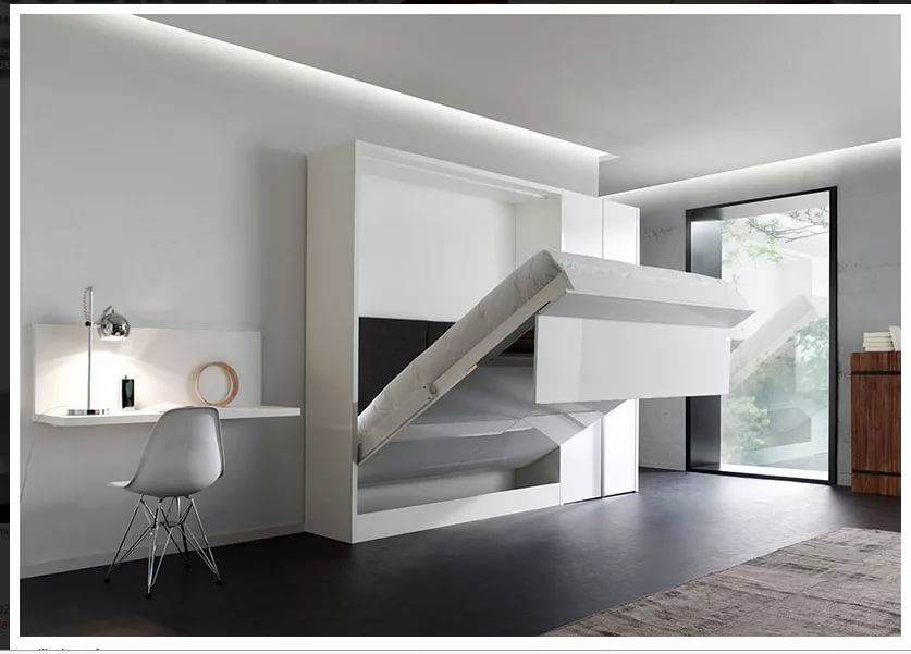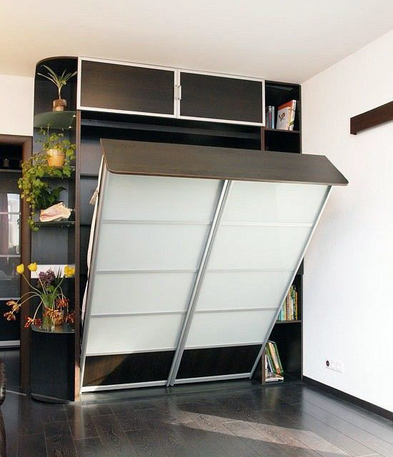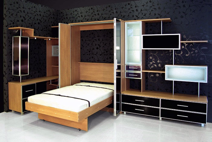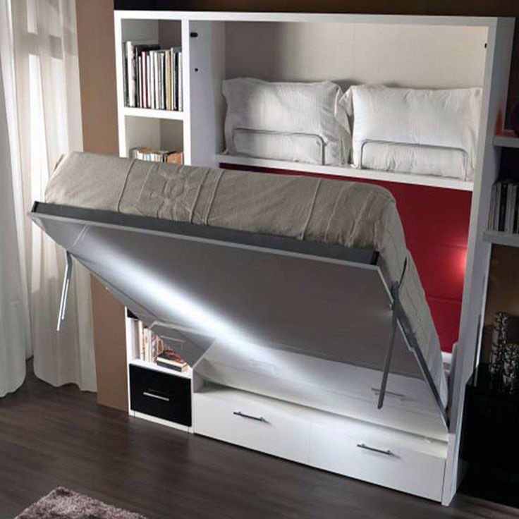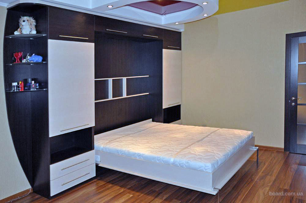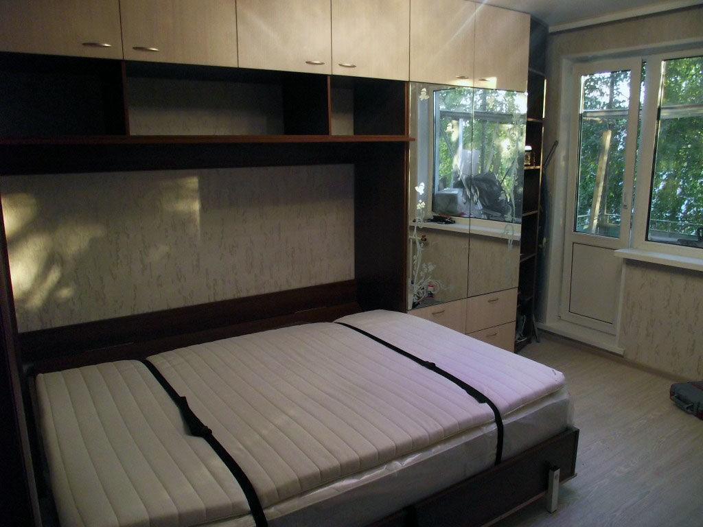 - горизонтальная — за счет бокового поднятия позволяет разместить над сложенной кроватью множество полочек и шкафчиков;