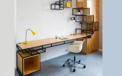 Размеры произвольные. Каркас сварной выполнен из стального профиля 20х20 мм , 25х25 мм, 40х20 мм, 40х40 мм , толщина 1,5 мм, покрыт порошковой полимерной краской. Мебельные щиты изготовлены из мебельного щита ЛДСП толщиной 16 мм.