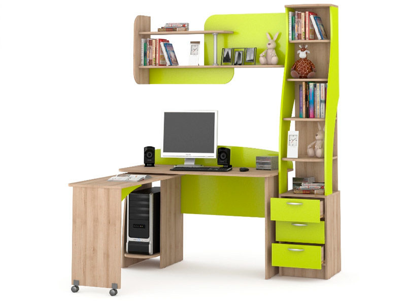 В небольшие помещения хорошо вписываются компьютерные столы 2 в 1 с рабочей зоной, полками и шкафчиками. Мне нравятся детские стенки, где мест для хранения еще больше — их аккуратно распределяют по площади стены.