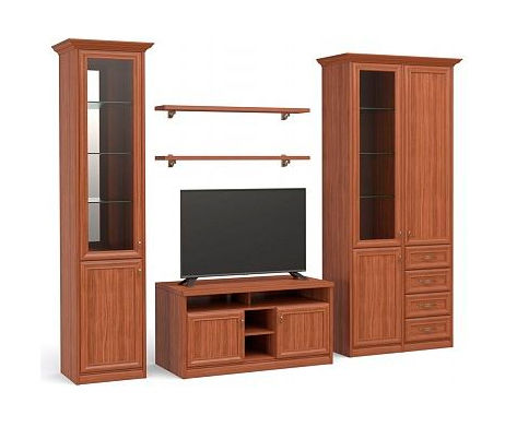 Комплект изготовлен из качественных фрезерованных плит МДФ и ЛДСП, фасад покрыт декоративной текстурной матовой или глянцевой ровной пленкой ПВХ (матовая,1 ценовая категория). Поверхность ПВХ устойчива к механическим повреждениям, влажности и перепадам температур. Пленка обеспечивает легкое удаление загрязнений с поверхностей. Ламинированная ДСП «Томлесдрев» 16мм, имеет высокую плотность, разрешено использовать в производстве детской мебели, торгового оборудования и др., экологическая безопасность класс Е1. Фурнитура изделия металлическая. Направляющие ящиков подшипниковые, петли металлические, ручки-кнопки металлические стандарт, стекло прозрачное.