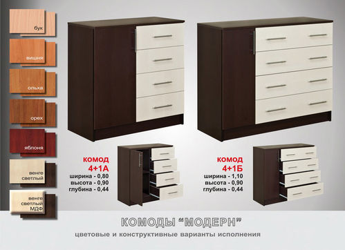 Комод 4+1Б: ширина - 110см, высота - 90см, глубина - 44см.