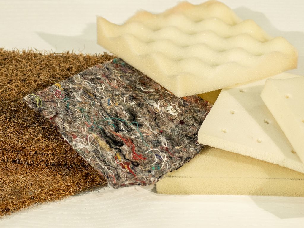 Самый распространенный вариант - пена (ППУ, пенополиуретан). Доступный по цене материал, который широко используется в производстве матрасов и мягкой мебели, и имеет множество преимуществ. Пена создает дополнительный комфорт и поддерживает позвоночник во время сна в правильном положении. Обладает высокой эластичностью и пружинистостью, что позволяет матрасу подстраиваться под форму тела и равномерно распределять вес. К тому же, обладает хорошей воздухопроницаемостью и, как следствие, гипоаллергенными свойствами.