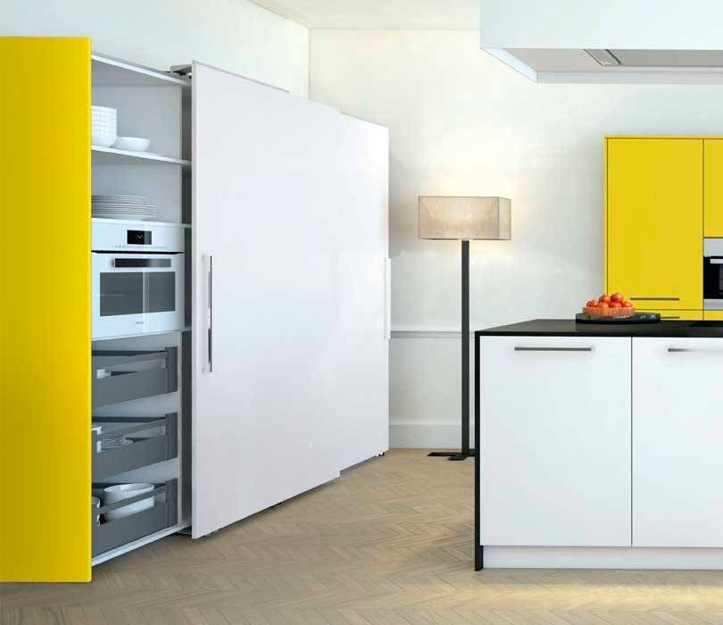 Линейка систем для раздвижных дверей позволяет реализовать любые дизайнерские решения для кухонного гарнитура. Усиленный демпфер для открывания и закрывания обеспечивает комфорт, а с монтажом справится даже любитель.