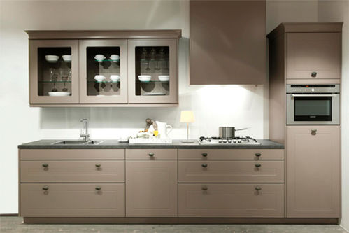 Древесноволокнистая плита (МДФ) производится прессованием древесных стружек, отличается безопасностью, прочностью и долгим сроком службы. Для расширения дизайнерских возможностей и облегчения ухода за кухонной мебелью МДФ покрывают прочной, стойкой к воздействию влаги и моющих средств пленкой ПВХ. Кухонные гарнитуры с фасадами из МДФ, покрытой поливинилхлоридной пленкой ,отличаются отличными эксплуатационными качествами и прекрасно смотрятся в интерьере.