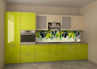 Древесноволокнистая плита (МДФ) производится прессованием древесных стружек, отличается безопасностью, прочностью и долгим сроком службы. Для расширения дизайнерских возможностей и облегчения ухода за кухонной мебелью МДФ покрывают прочной, стойкой к воздействию влаги и моющих средств пленкой ПВХ. Кухонные гарнитуры с фасадами из МДФ, покрытой поливинилхлоридной пленкой ,отличаются отличными эксплуатационными качествами и прекрасно смотрятся в интерьере.