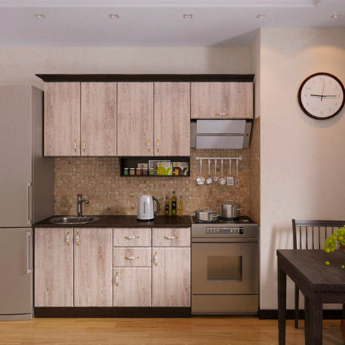 Древесноволокнистая плита (МДФ) производится прессованием древесных стружек, отличается безопасностью, прочностью и долгим сроком службы. Для расширения дизайнерских возможностей и облегчения ухода за кухонной мебелью МДФ покрывают прочной, стойкой к воздействию влаги и моющих средств пленкой ПВХ. Кухонные гарнитуры с фасадами из МДФ, покрытой поливинилхлоридной пленкой ,отличаются отличными эксплуатационными качествами и прекрасно смотрятся в интерьере.