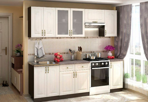 Древесноволокнистая плита (МДФ) производится прессованием древесных стружек, отличается безопасностью, прочностью и долгим сроком службы. Для расширения дизайнерских возможностей и облегчения ухода за кухонной мебелью МДФ покрывают прочной, стойкой к воздействию влаги и моющих средств пленкой ПВХ. Кухонные гарнитуры с фасадами из МДФ, покрытой поливинилхлоридной пленкой ,отличаются отличными эксплуатационными качествами и прекрасно смотрятся в интерьере.