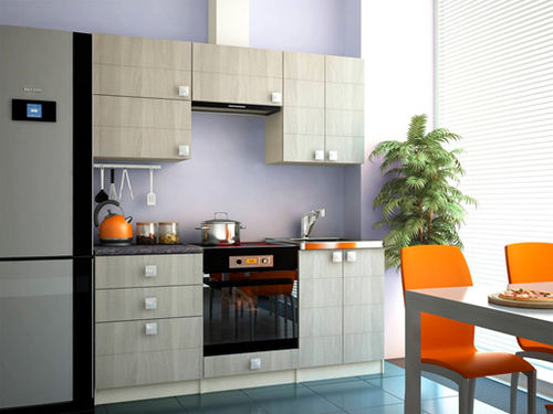 Древесноволокнистая плита (МДФ) производится прессованием древесных стружек, отличается безопасностью, прочностью и долгим сроком службы. Для расширения дизайнерских возможностей и облегчения ухода за кухонной мебелью МДФ покрывают прочной, стойкой к воздействию влаги и моющих средств пленкой ПВХ. Кухонные гарнитуры с фасадами из МДФ, покрытой поливинилхлоридной пленкой ,отличаются отличными эксплуатационными качествами и прекрасно смотрятся в интерьере.