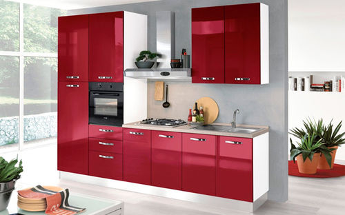 Древесноволокнистая плита (МДФ) производится прессованием древесных стружек, отличается безопасностью, прочностью и долгим сроком службы. Для расширения дизайнерских возможностей и облегчения ухода за кухонной мебелью МДФ покрывают прочной, стойкой к воздействию влаги и моющих средств пленкой ПВХ. Кухонные гарнитуры с фасадами из МДФ, покрытой поливинилхлоридной пленкой ,отличаются отличными эксплуатационными качествами и прекрасно смотрятся в интерьере.