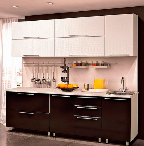 Древесноволокнистая плита (МДФ) производится прессованием древесных стружек, отличается безопасностью, прочностью и долгим сроком службы. Для расширения дизайнерских возможностей и облегчения ухода за кухонной мебелью МДФ покрывают прочной, стойкой к воздействию влаги и моющих средств пленкой ПВХ. Кухонные гарнитуры с фасадами из МДФ, покрытой поливинилхлоридной пленкой ,отличаются отличными эксплуатационными качествами и прекрасно смотрятся в интерьере.