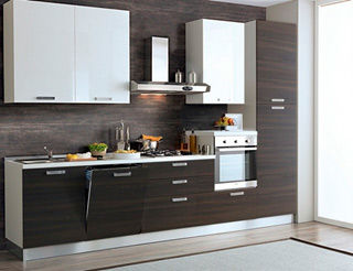 Древесноволокнистая плита (МДФ) производится прессованием древесных стружек, отличается безопасностью, прочностью и долгим сроком службы. Для расширения дизайнерских возможностей и облегчения ухода за кухонной мебелью МДФ покрывают прочной, стойкой к воздействию влаги и моющих средств пленкой ПВХ. Кухонные гарнитуры с фасадами из МДФ, покрытой поливинилхлоридной пленкой ,отличаются отличными эксплуатационными качествами и прекрасно смотрятся в интерьере.