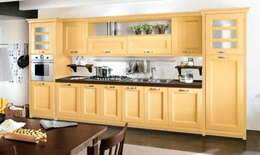 Древесноволокнистая плита (МДФ) производится прессованием древесных стружек, отличается безопасностью, прочностью и долгим сроком службы. Для расширения дизайнерских возможностей и облегчения ухода за кухонной мебелью МДФ покрывают прочной, стойкой к воздействию влаги и моющих средств пленкой ПВХ. Кухонные гарнитуры с фасадами из МДФ, покрытой поливинилхлоридной пленкой ,отличаются отличными эксплуатационными качествами и прекрасно смотрятся в интерьере.