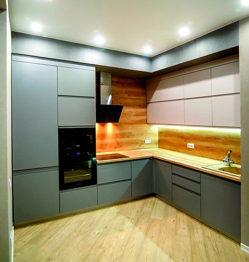 Древесноволокнистая плита (МДФ) производится прессованием древесных стружек, отличается безопасностью, прочностью и долгим сроком службы. Для расширения дизайнерских возможностей и облегчения ухода за кухонной мебелью МДФ покрывают прочной, стойкой к воздействию влаги и моющих средств пленкой ПВХ. Кухонные гарнитуры с фасадами из МДФ, покрытой поливинилхлоридной пленкой ,отличаются отличными эксплуатационными качествами и прекрасно смотрятся в интерьере.