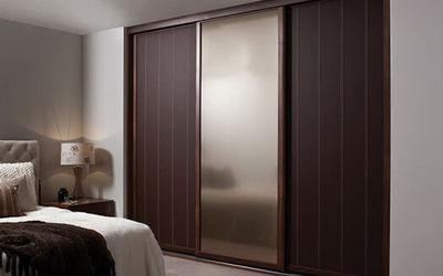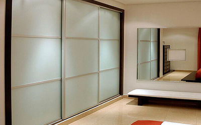 в отдельностоящих шкафах-купе с дном и крышей. Дверь скользит