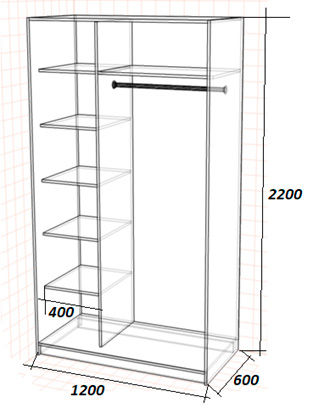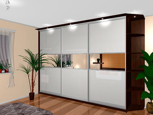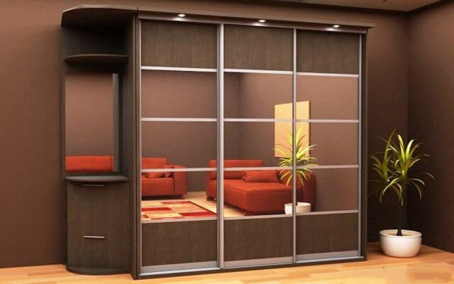 В отличие от встроенного, корпусный шкаф купе имеет заднюю и боковые
