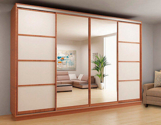 Без чего не может обойтись ни одна женщина!? Ну конечно, без зеркала! А если к зеркалу добавить ещё и шкаф с десятком платьев, то восторгу не будет предела! Проверено! Поэтому корпусный шкаф купе с зеркалом, по настоящему, оценят заядлые модницы. Но если серьёзно, то зеркало обладает ещё одним очень важным свойством, оно способно визуально расширять пространство, что наверняка заинтересует владельцев малогабаритного жилья. Вот так просто, казалось бы, обычный корпусный шкаф купе с зеркальным фасадом решает сразу несколько задач.
