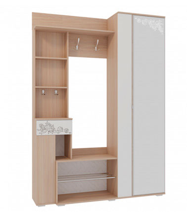 крючка для одежды и 2 крючка для ключей, тумба под обувь, шкаф с зеркалом,