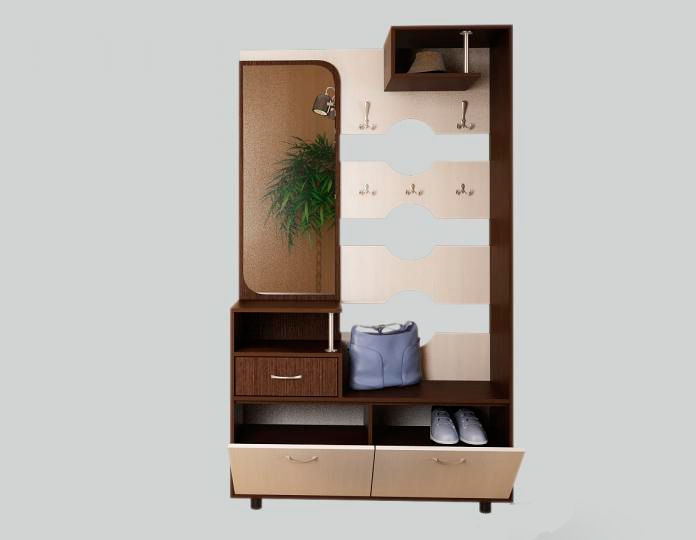 Материал — ламинированная ДСП «Томлесдрев» 16мм, имеет высокую плотность, разрешено использовать в производстве детской мебели, торгового оборудования и др., экологическая безопасность класс Е1. Фурнитура изделия металлическая. Направляющие ящиков и выдвижных полок роликовые. Кромка корпуса — противоударная, ПВХ , толщиной 0,4 мм. Задняя стенка ДВПО.