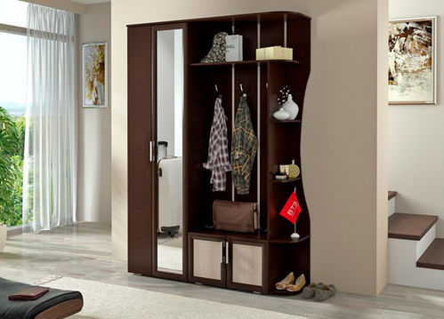 крючка для одежды, тумба под обувь, зеркало, штанга выдвижная