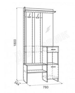 крючка для одежды, тумба под обувь, зеркало
