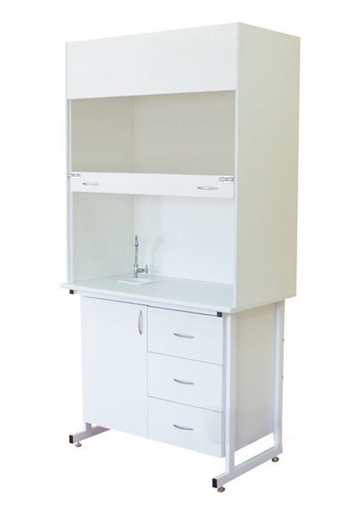 Шкаф оснащён люминесцентной лампой и вентилятором, (мойкой, краном за дополнительную плату);
