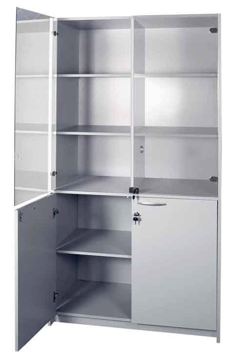 Полки - влаго-химостойкая композитная панель 16мм. Ручки, используемые для открывания дверцы, изготовлены из металла с защитным покрытием. Поверхности шкафа устойчивы к дезинфекции.