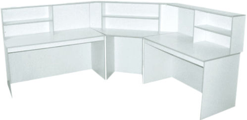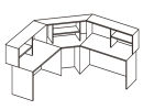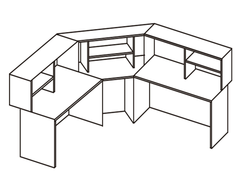 Состоит из трех секций: первая секция - стол с надстройкой, с тремя полками; вторая секция - стол с надстройками с тремя полками; третья секция - угловой столик с надстройкой с двумя полками. Возможна комплектация выдвижными тумбами.