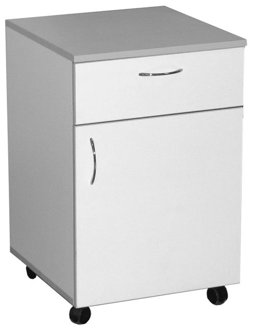 Представляет собой модульную сборно-разборную конструкцию, которая включает в себя подкатную тумбу на мебельных колесах, с выдвижным ящиком и нижним отделением с дверью.