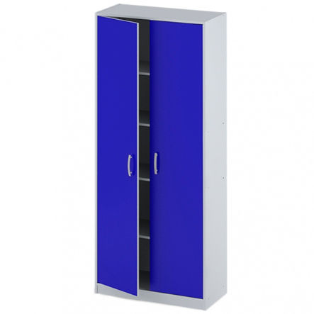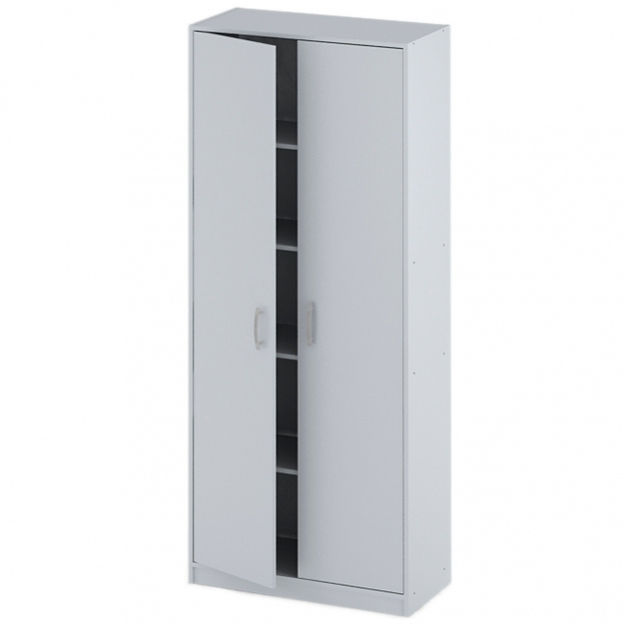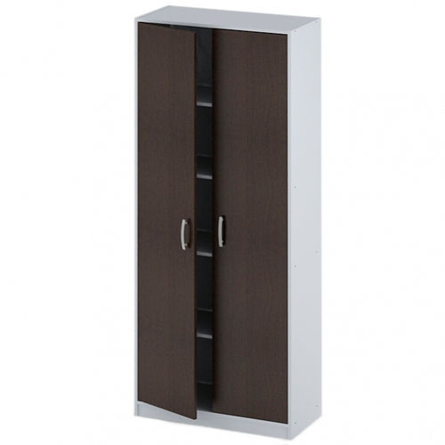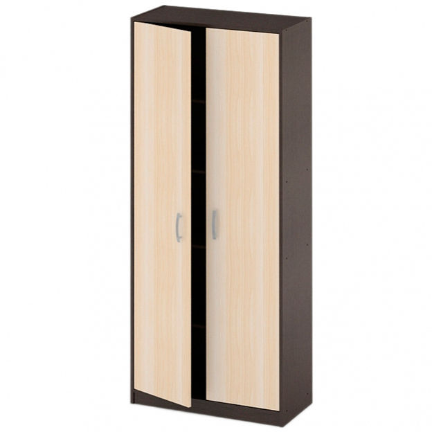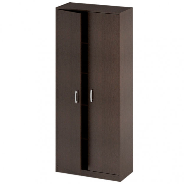 Изготовлен из ЛДСП 16 мм. с отделкой кромочным пластиком 0,4 мм. Оснащены: металлическими ручками, металлическими петлями с углом открывания двери 90 гр, 5 полок.