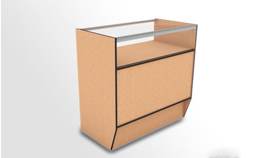 Модификацией данного типа прилавка является элемент с остеклением верхней части и стеклянной полкой внутри демонстрационной части.