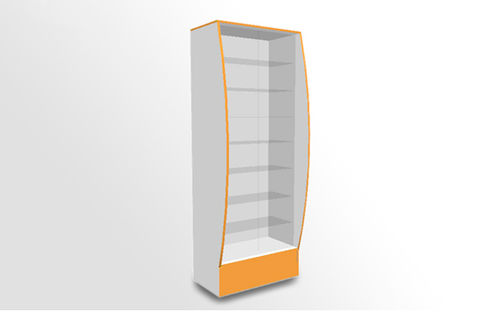 В первом случае витрина изготавливается высотой до 2,1 м и предназначается для установки возле стены. Дверцы демонстрационной части и накопителя открываются со стороны покупателя и, обычно, комплектуются замками.