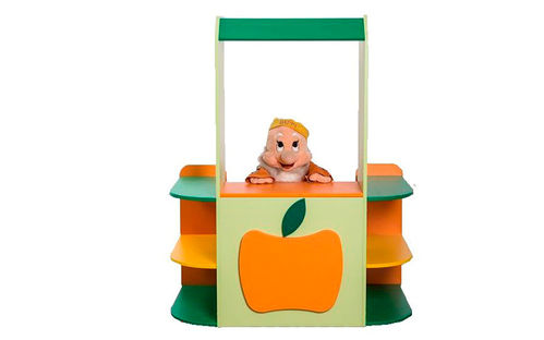 Стеллаж изготовлен из ламинированного цветного ДСП (цвета - желтый + апельсин + зеленая вода + зеленый). Торцы обклеены противоударной кромкой ПВХ.