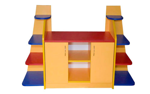 Детский уголок изготовлен из ламинированного цветного ДСП (возможны различные цветовые комбинации). Торцы обклеены противоударной кромкой ПВХ.