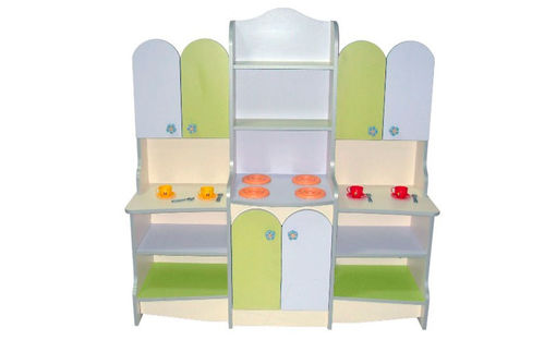 Кухня изготовлена из ламинированного цветного ДСП (цвета - беж, лаванда, зеленая вода). Торцы обклеены противоударной кромкой ПВХ.