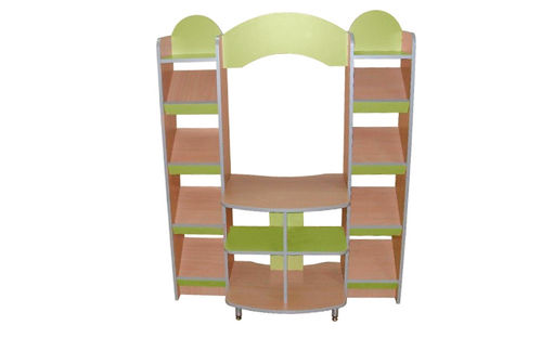 Детский магазин изготовлен из ламинированного цветного ДСП (цвета - желтый + зеленая вода, беж + зеленая вода). Торцы обклеены противоударной кромкой ПВХ.