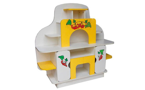 Печка изготовлена из ламинированного цветного ДСП (цвета - беж + желтый, беж + желтый + красный + синий). Торцы обклеены противоударной кромкой ПВХ.
