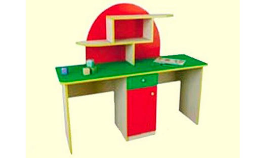 Стол изготовлен из ламинированного цветного ДСП (возможны различные цветовые комбинации). Торцы обклеены противоударной кромкой ПВХ.